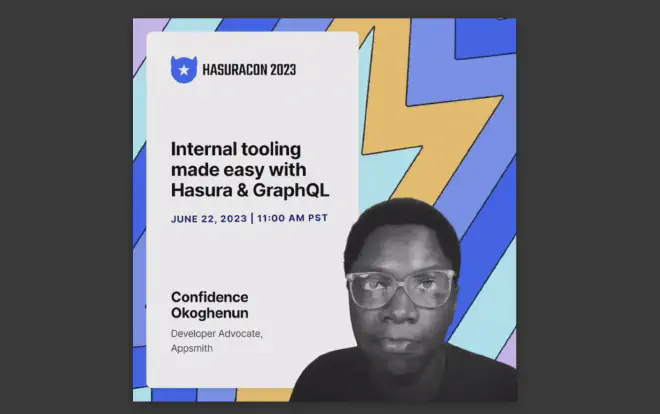Join us at #HasuraCon23 to hear from @megaconfidence, Developer Advocate at @theappsmith , will show you how to leverage Hasura's GraphQL Engine and low-code solutions to build full-stack internal tooling in minutes.